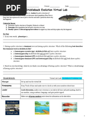 In this lab students learn and apply techniques for analyzing the forms and structures of organisms in particular the pelvic structures of the threespine stickleback fish Gasterosteus aculeatus a model organism for studying evolution. Stickleback Evolution Lab Worksheet Answers April 12th 2019 - This really is relevant to stickleback evolution lab worksheet answers Similar to stickleback evolution lab worksheet answers An vital aspect of workplace automation is finding a reliable answering services that understands your home business so as to help you boost your revenue. The genotype for stickleback fish without pelvic spines both absent and reduced fish in the virtual lab is homozygous recessive.